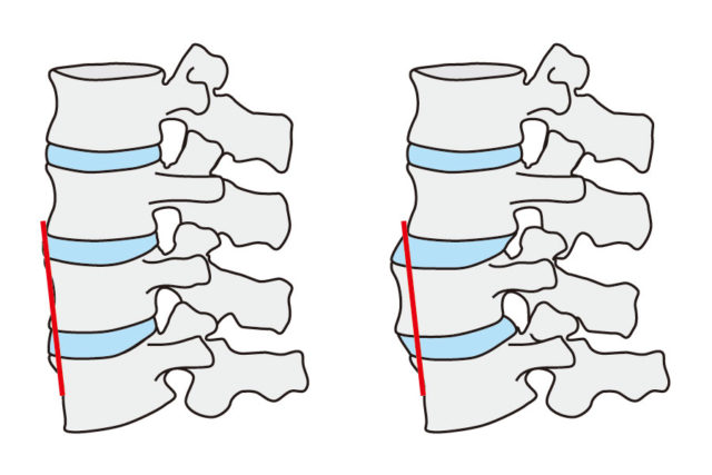 脊柱全体に回旋ストレスが伝わりやすい状態。